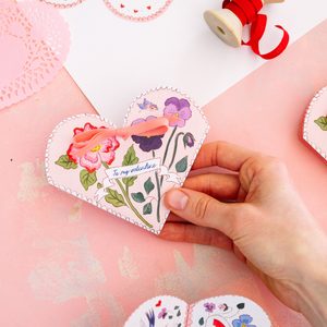 Send a love note straight out of the Victorian era with this charming printable. Designed to fold open and closed like a keepsake, it reveals lovely illustrations and a special space for your handwritten message inside. Perfect for everyone you are celebrating this Valentine's Day. Refer to the IG reel for easy folding instructions.